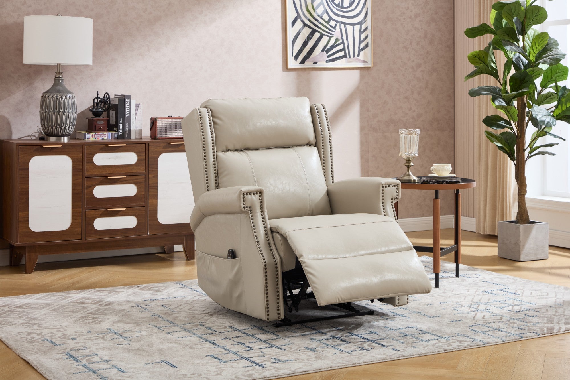 Faux leather lift recliners: Many buyers choose faux leather for easy wipe-clean care and a modern look. Look for strong stitching and durable coatings so the surface holds up over time.