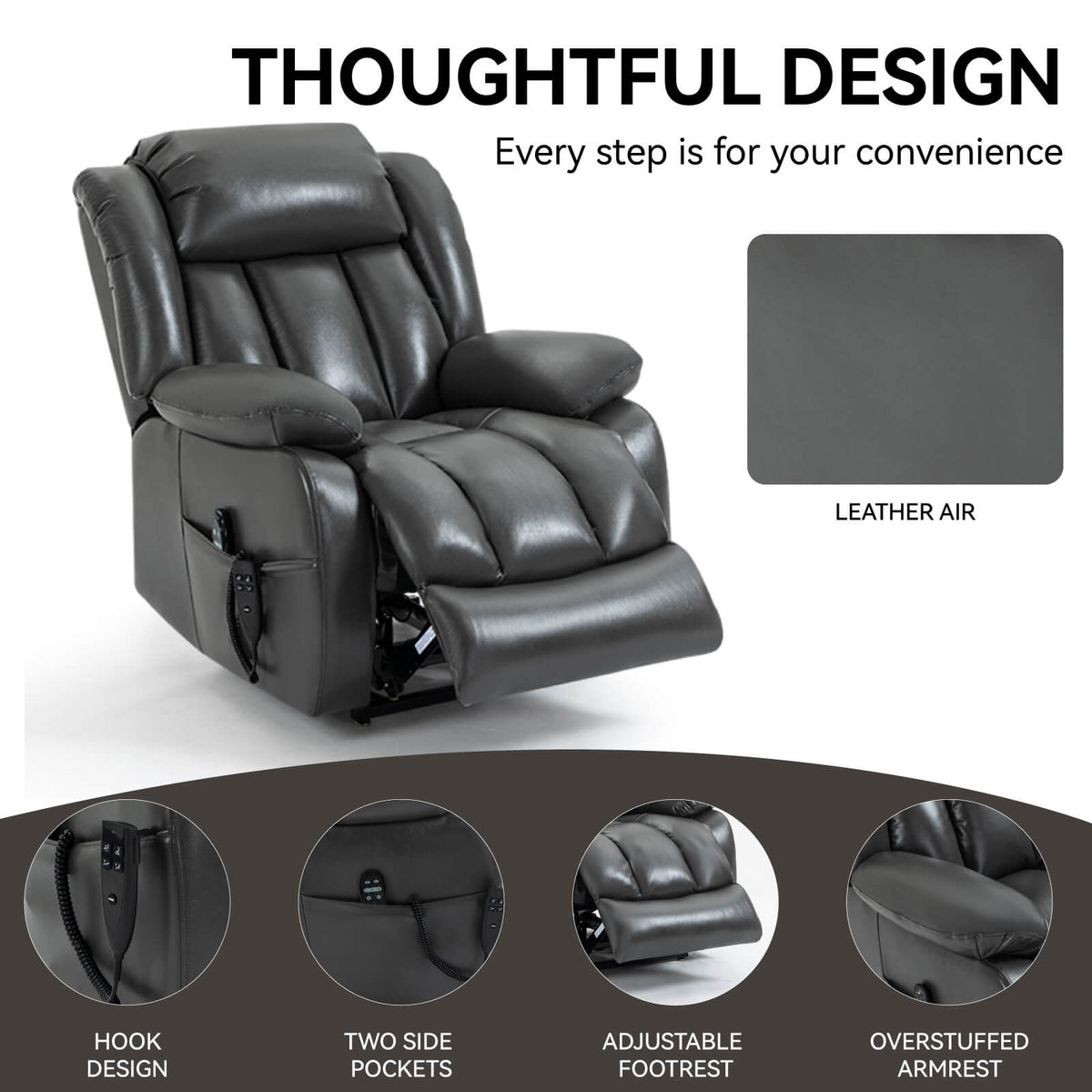 LL0243-Oversized Faux Leather Power Lift Recliner Chairs with Massage & Heat