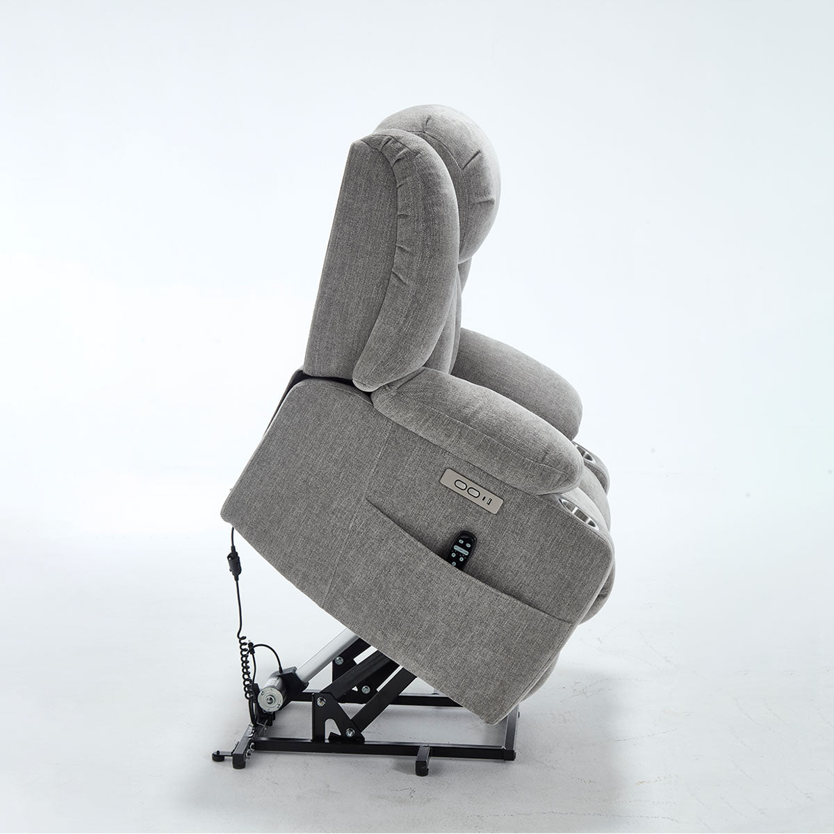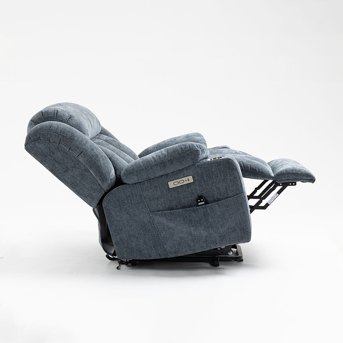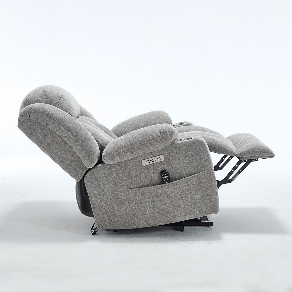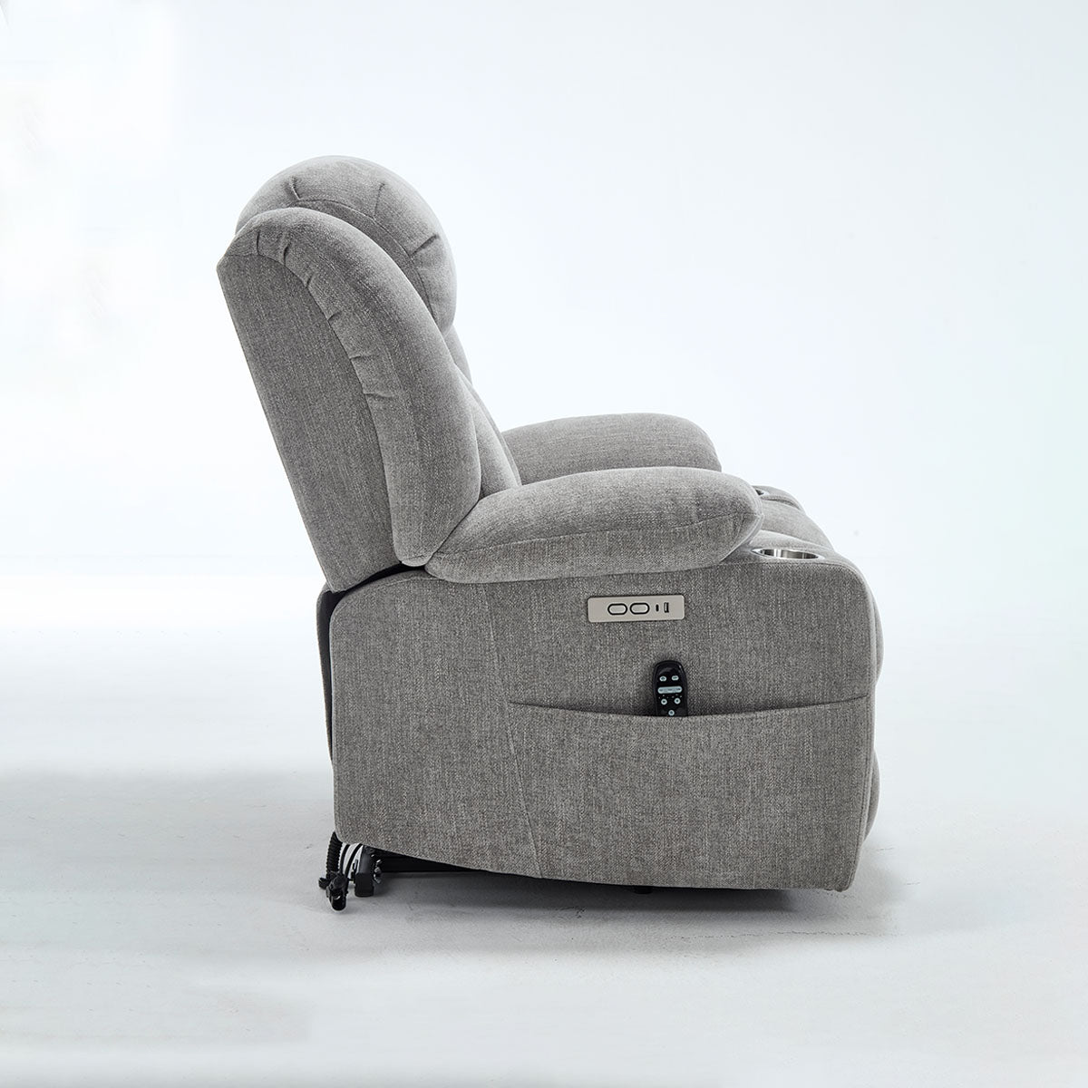 Convenience features keep essentials close—remote, phone, and drinks—making it a practical lift chair recliner for living room routines and long sitting sessions.
