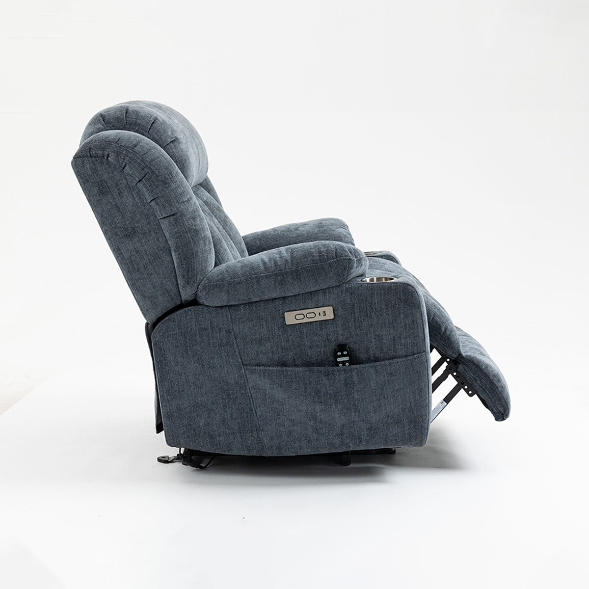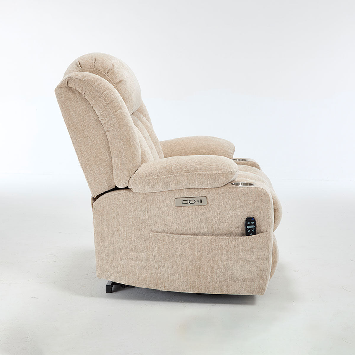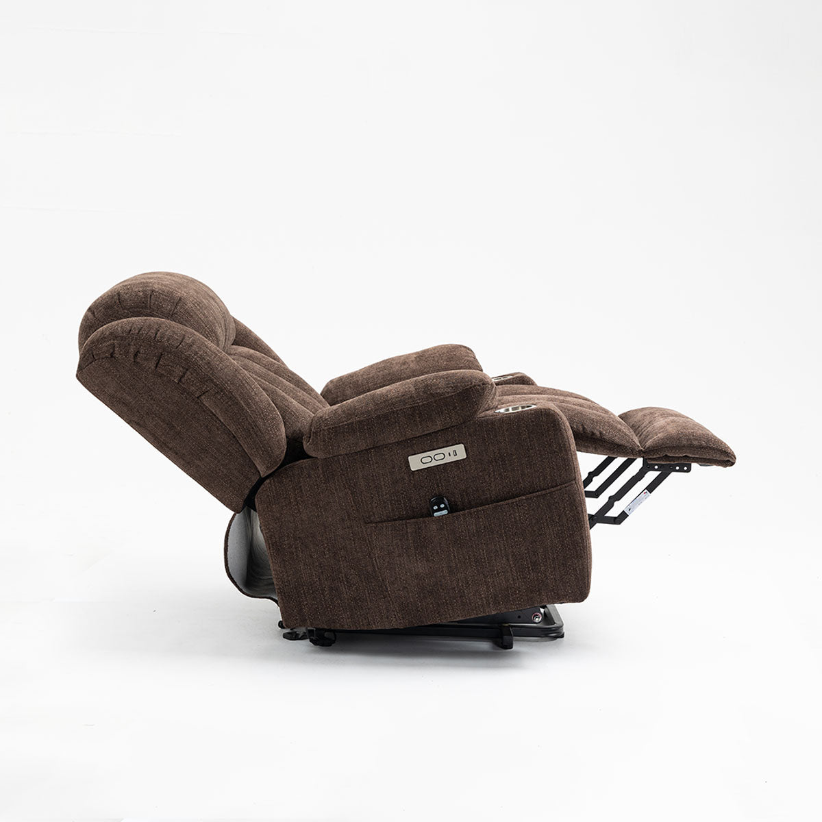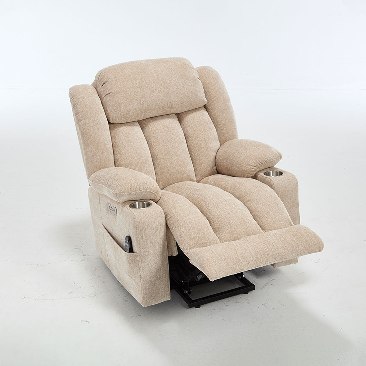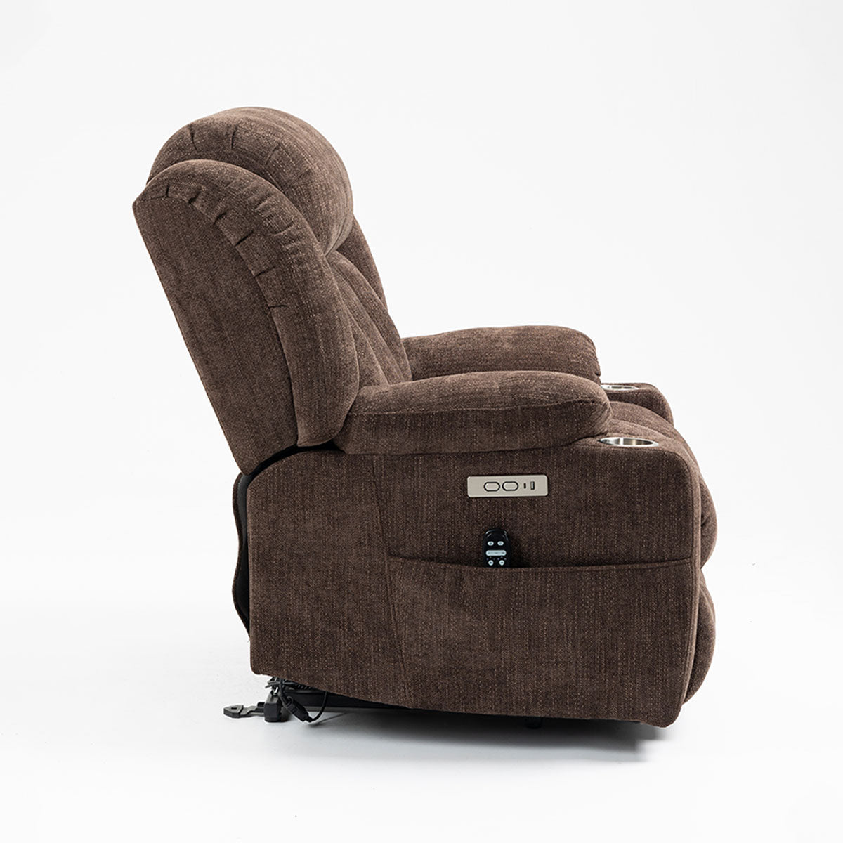 Convenience features keep essentials close—remote, phone, and drinks—making it a practical lift chair recliner for living room routines and long sitting sessions.