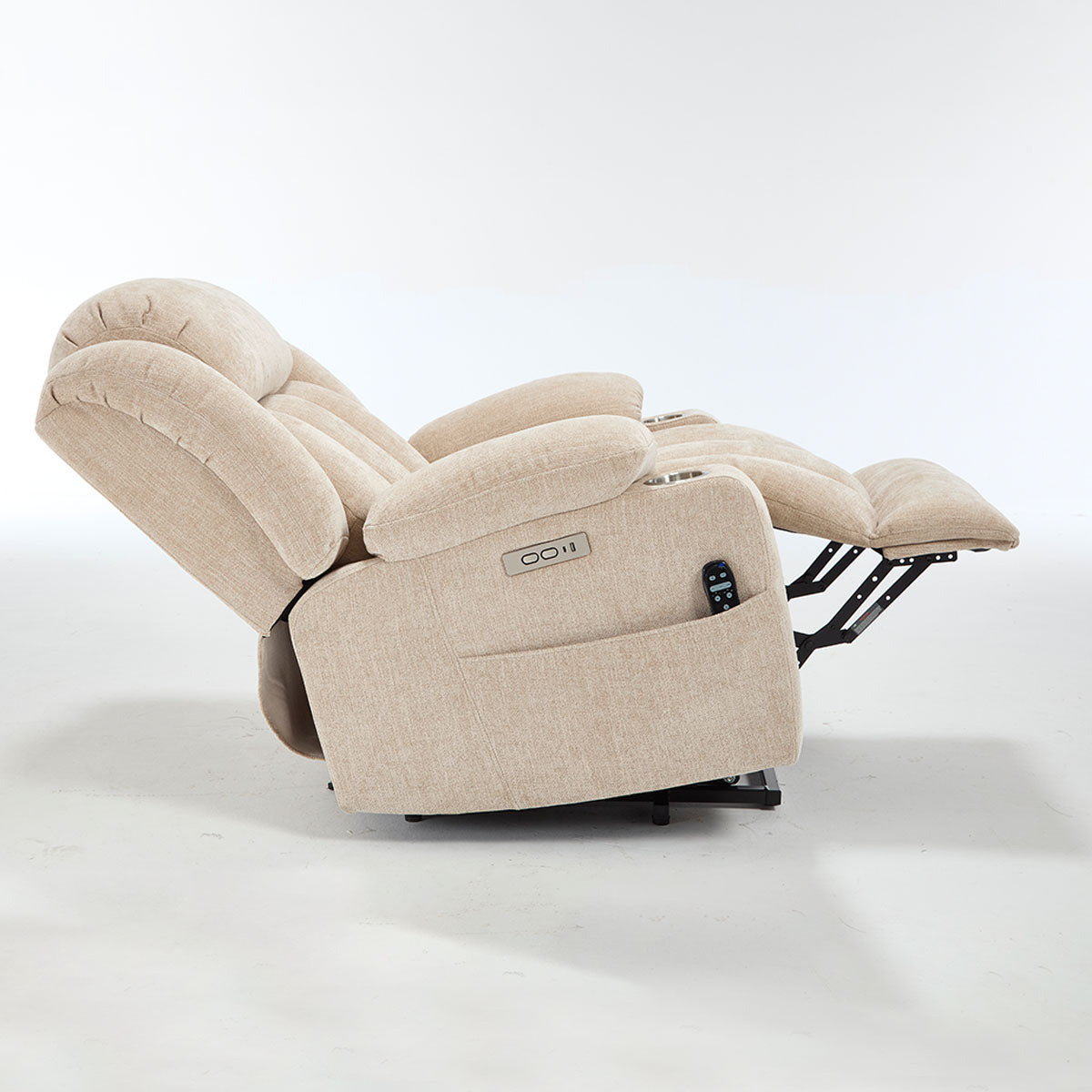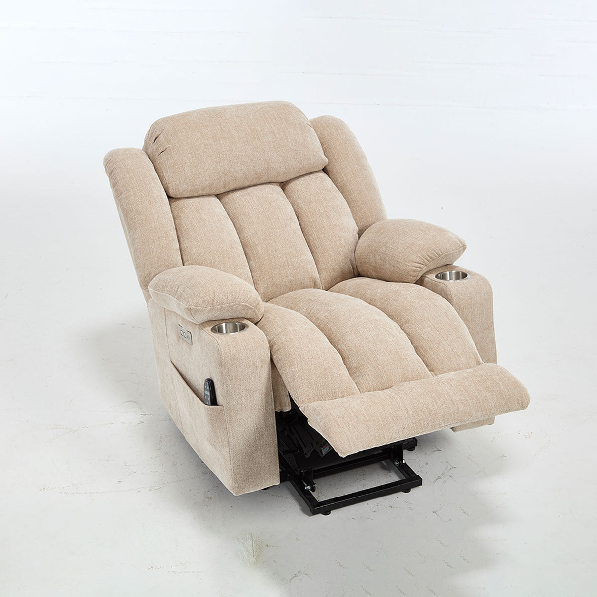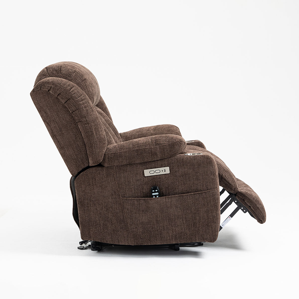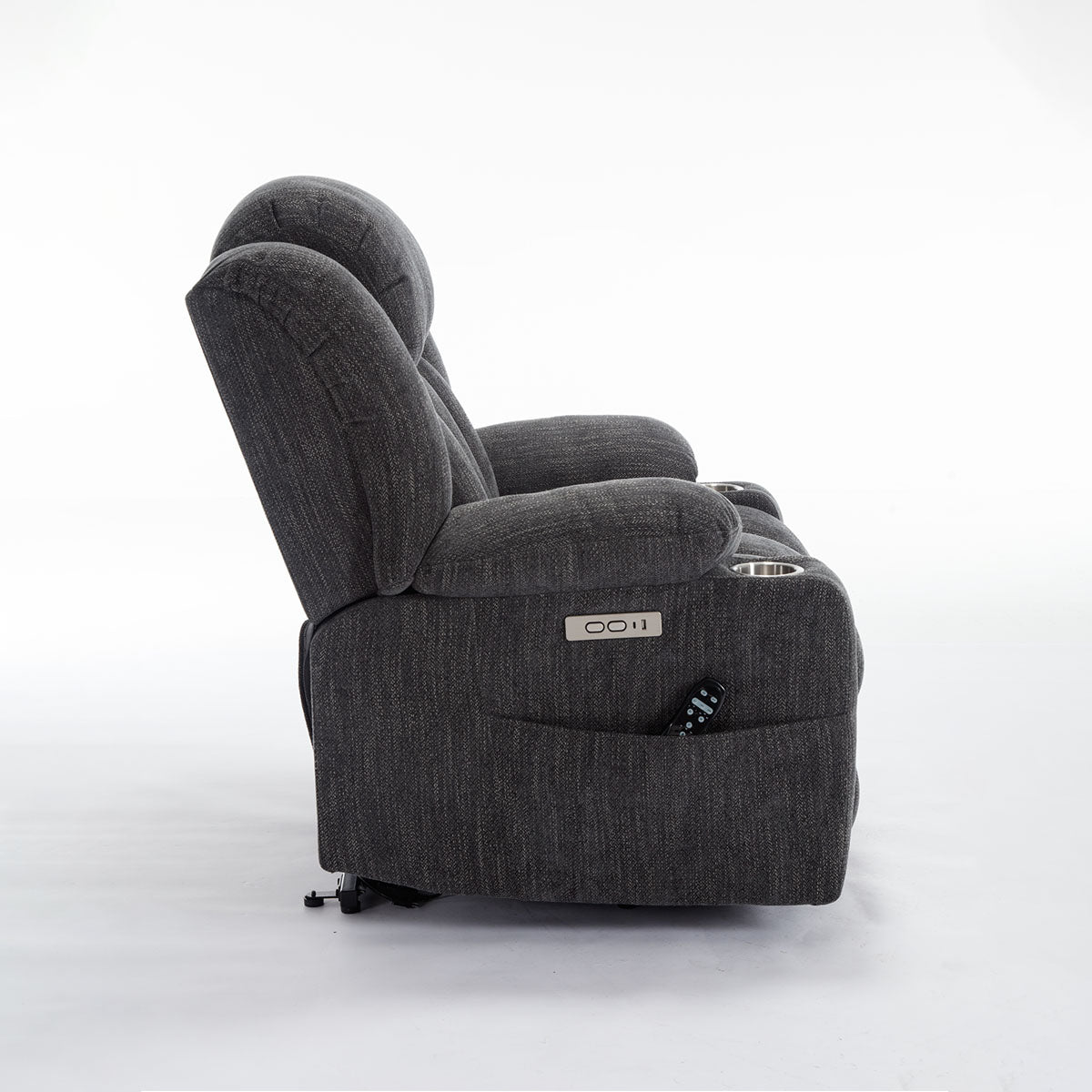 Convenience features keep essentials close—remote, phone, and drinks—making it a practical lift chair recliner for living room routines and long sitting sessions.