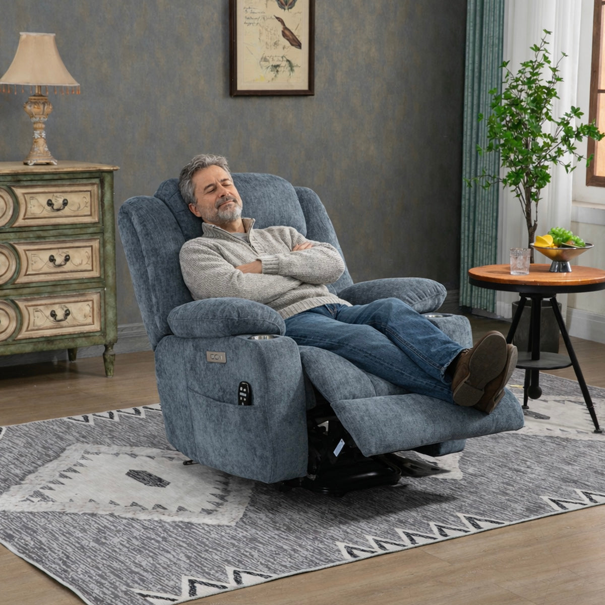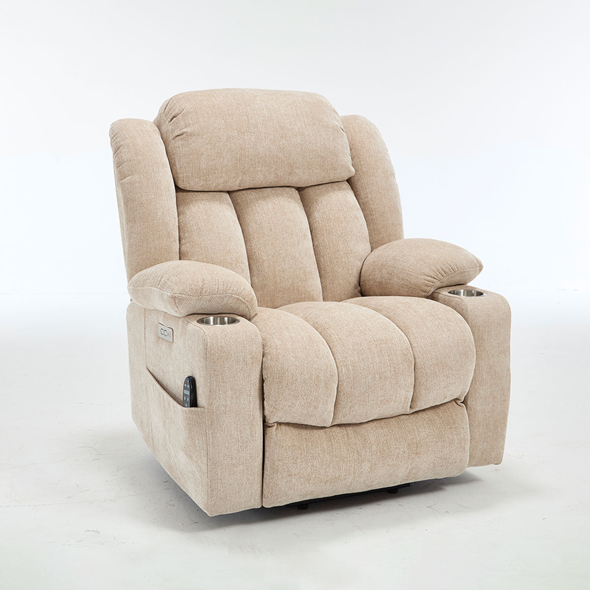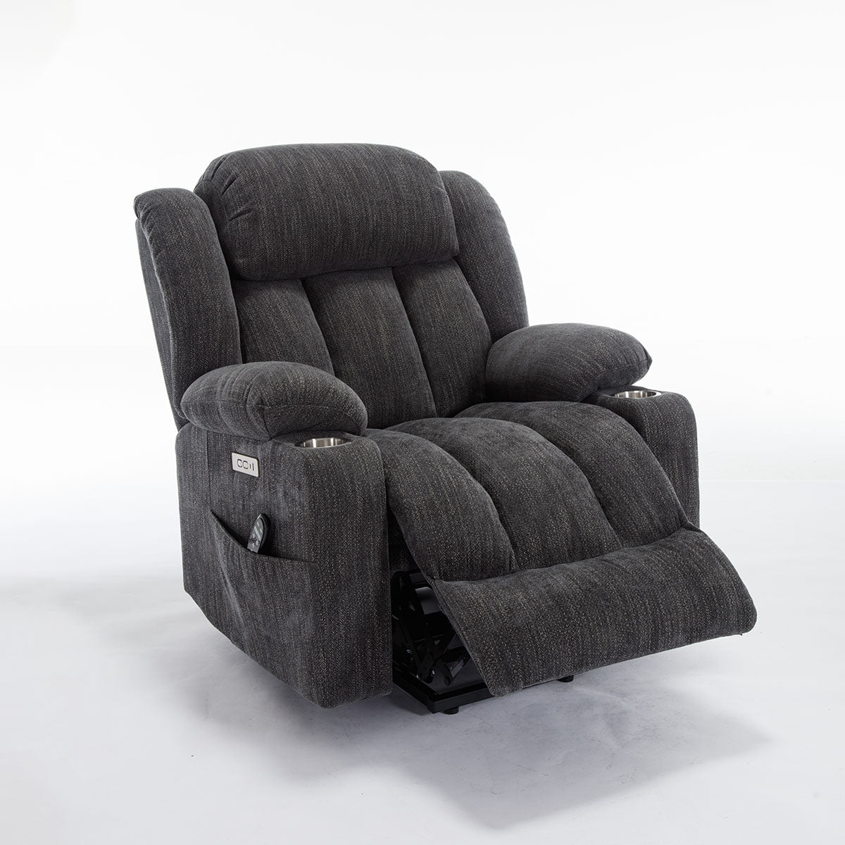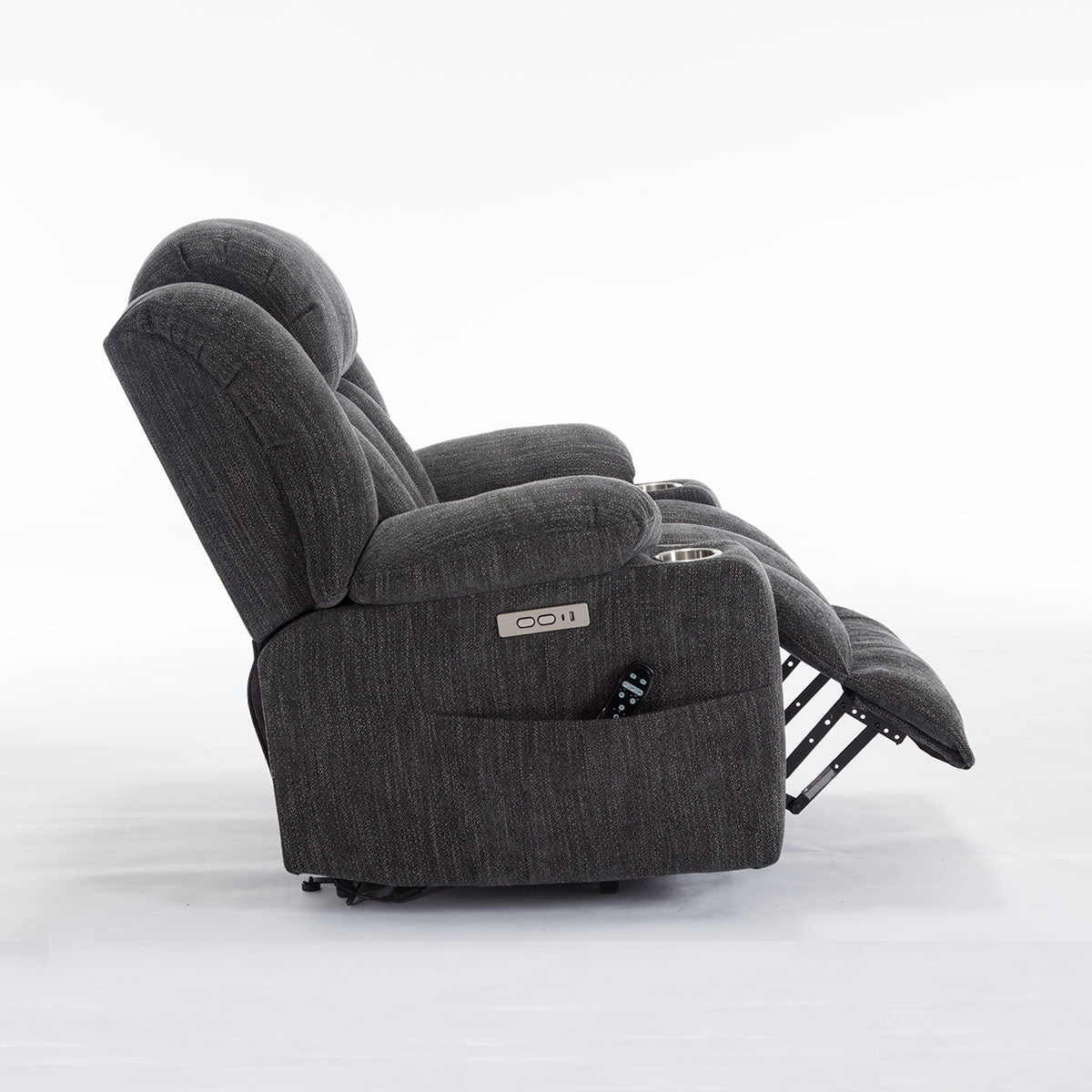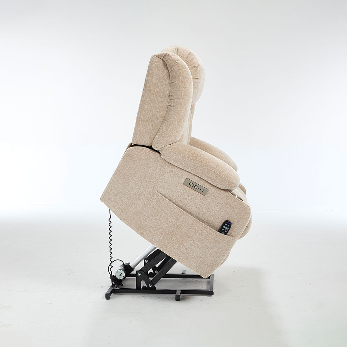 Convenience features keep essentials close—remote, phone, and drinks—making it a practical lift chair recliner for living room routines and long sitting sessions.