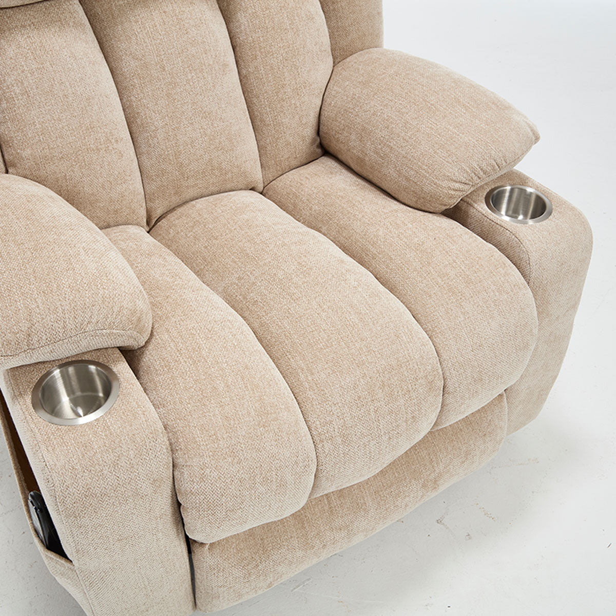 Yes—chenille upholstery + cup holders + pockets make it a practical living room chair recliner for TV time, reading, and relaxation. The 155° recline supports comfortable lounging (not marketed as “lay-flat”).